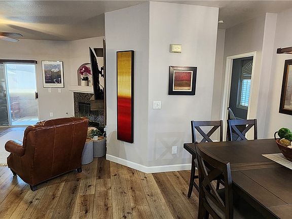 Modern cabinet hardwareStainless steel appliancesCozy fireplaceCeiling fansGranite countersHardwood laminate flooringUpdated lighting