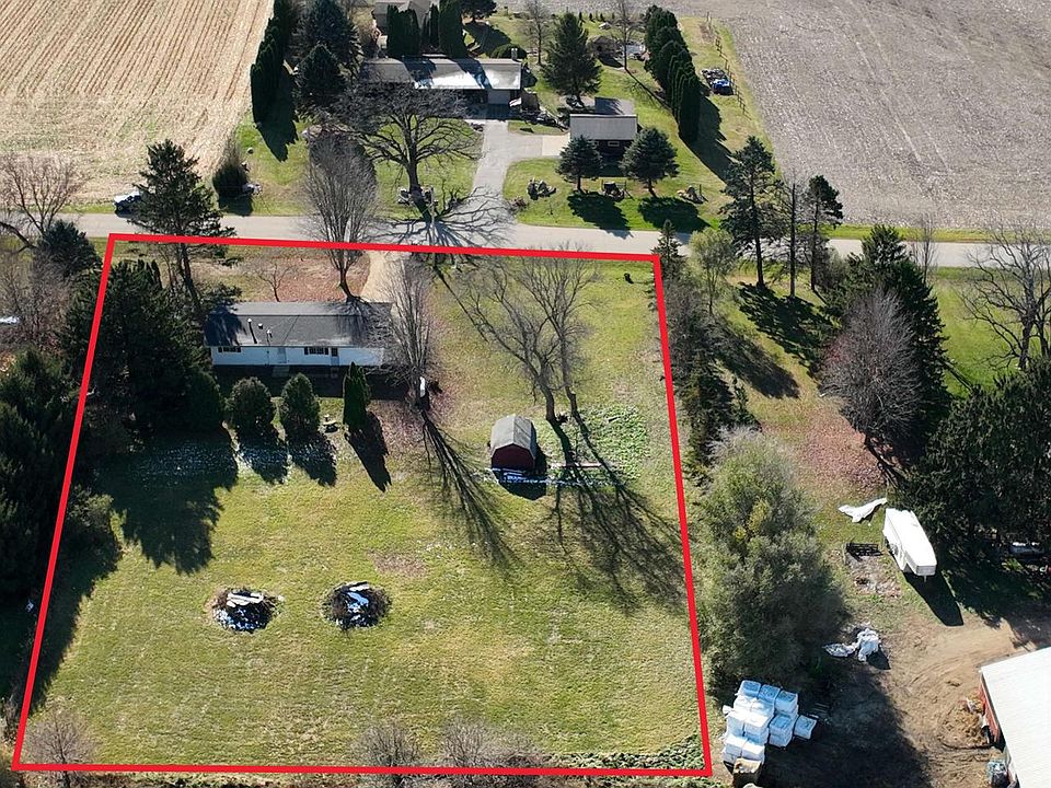 1+ Acre in the Country! Updated and looking good! Home has an open concept with 2 bedrooms, 1 bathroom and 1 car attached garage. Newer stainless steel appliances, stove, refrigerator, dishwasher, microwave and also includes a washer and dryer. 14x12 Shed for extra storage. Enjoy the light and bright partially finished basement. Peace and quiet awaits you!