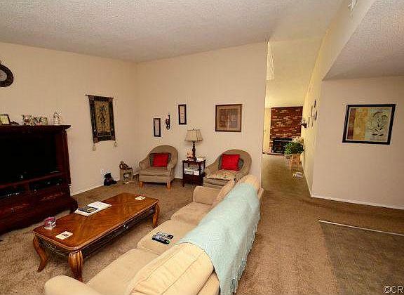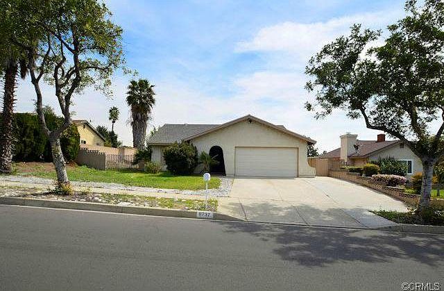 Open and airy floorplan affords a 3 bedrooms and 2 bathrooms and almost 1400 sqft (1391 per tax). Interior has been painted with two toned d cor' paint. Newer plush carpeting throughout. Open kitchen features an abundance of cabinetry and stainless steel appliances with solid counters and opens to family room/nook warned by wood burning brick fireplace! Oversized living room offers plenty of room for gatherings and has stellar mountain views. Newer window coverings and ceiling fans throughout. Spacious rooms. This property is a must see! Master suite has been remodeled too. Enormous backyard has plenty of room for a pool and an abundance or RV parking. Two car attached garage with direct access to interior and also has side door access to backyard.