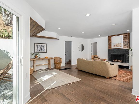 This gorgeous modern canyon retreat nestled away up in the quaint hills of charming Laurel Canyon surrounded by nature and serenity is fully remodeled and move-in ready! Discover this awesome open layout with tons of natural light, hardwood floors, a gorgeous modern fireplace in the living room and a glass door to your private outdoor patio surveying your land that's just perfect for eating alfresco and entertaining your friends in the canyon! The bright open cook's kitchen features tons of white quartz counter space, custom cabinets, stainless appliances, all finished off with a breakfast bar connecting it to your dining area which doubles as a buffet for dinner parties! Venture upstairs enjoying the vistas of nature as you go up and find your oversized primary bedroom waiting with a huge walk-in closet, an additional closet, all drenched in plenty of natural light. Your second bedroom is an expansive and private modern space with gorgeous South Western natural light coming through the big windows and features a generously sized step-in closet. Just down the hall is a third room that could be your office, or a baby nursery, or even a kids bedroom with this awesomely cozy and efficient space that's perfect for the extra space you need! This gorgeously remodeled bright upstairs floor is finished off with a spacious custom bathroom offering white quartz counters, dual vanities, a big custom tiled shower with frameless glass door, and a modern window to let in the light. Kids go to Wonderland Ave Elementary just down the street!