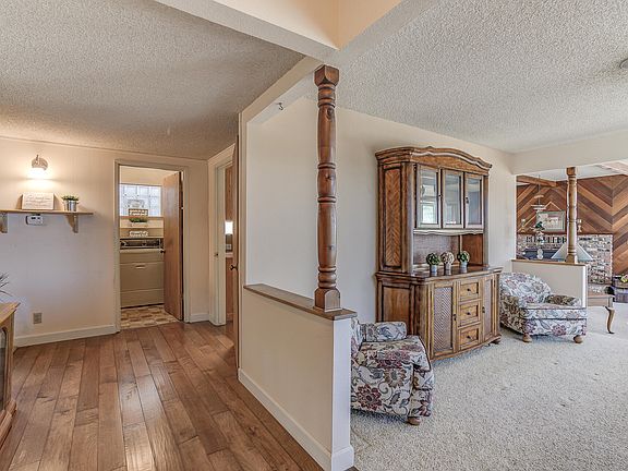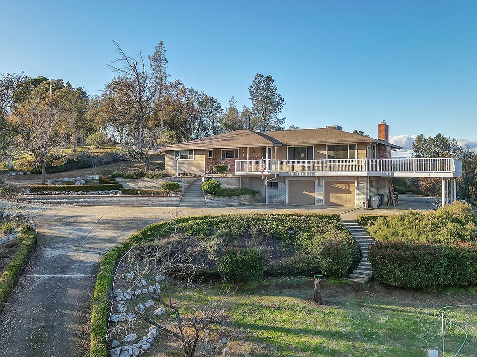Large 1.5 acre view lot with low maintenance landscaping. Oversized attached garage and additional finished space for storage, hobbies, etc. at the lower garage level. Attached double carport. The home has updated kitchen cabinets with Corion counter tops and decorator tile. The flooring is real wood planking. There are two full sinks, a 6 burner range with grill, oven and microwave. Both baths have tile flooring and showers finished with granite counter tops. Primary bath has a make up station!! All of the bedrooms are spacious. The primary bedroom has lots o storage and a walk in closet plus additional built in cabinetry for storage. The 4th bedroom is used as an office and has a slider to the pool area.