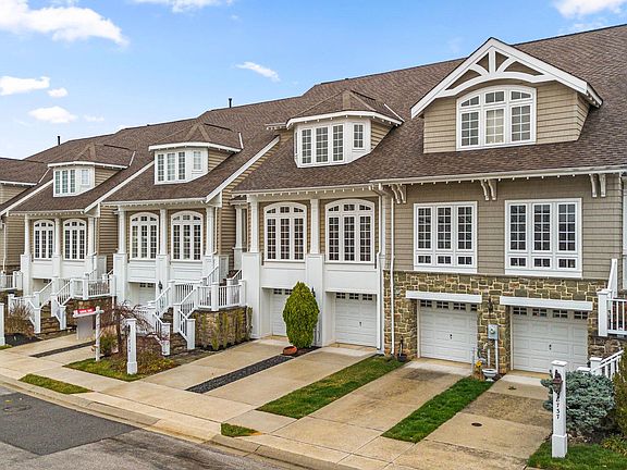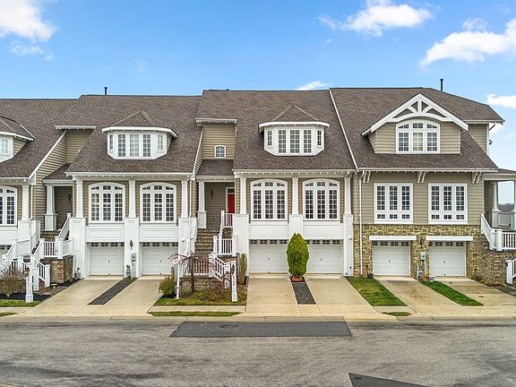 Transitional townhouse with breathtaking lake views offering 2,865 square feet, 3 bedrooms, 2 full baths, 2 half baths, and a 2-car garage in Howard County's premiere gated community, Stone Lake, which boasts waterfront amenities alongside the pristine 25-acre lake. The expansive open-concept main level features gleaming hardwood floors that flow from the foyer into the combined living and dining room, accented by elegant chair rail detailing and a sophisticated chandelier. Hardwoods continue past a convenient powder room into the spacious eat-in gourmet kitchen, which boasts an island breakfast bar illuminated by elegant pendant lighting, ample cabinetry and counter space, a stylish backsplash, a stainless steel refrigerator, and white appliances that seamlessly complement the bright and airy design. The sunlit breakfast area provides exterior access, while the adjacent family room serves as the heart of the home, featuring a gas-burning fireplace framed by built-ins. The upper level offers a laundry room and two bedrooms, including the luxurious primary suite with a striking two-story vaulted tray ceiling, a sitting area, two walk-in closets with organization systems, a private upper balcony, and an ensuite bath. The spa-like bath includes separate vanities and water closets, dual access to the shower, a dedicated makeup station, and a soaking tub with serene lake views. The second bedroom features a walk-in closet and an attached full bath. The lower level includes a third bedroom, a full bathroom, a utility room, and a bright, open recreation room with plush carpeting and exterior access. Outdoor living is elevated with an expansive deck, a bluestone patio featuring a gas fireplace, and stunning views of the tranquil woodland and lake. Community amenities include tennis courts, a putting green, a playground, scenic lakeside paths and pavilions, and access to various water activities.