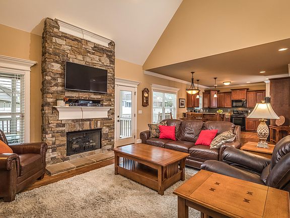 Welcome to the desirable Seven Lakes Subdivision where your dream home awaits. This home features a two car garage, pristine landscaping, entirely fenced large backyard, and a stepping stone path to a perfect fire pit area. A rocking chair front porch greets you at the threshold. Be prepared to be mesmerized as you enter by gleaming hardwood floors, specialty ceilings, and archways, cathedral ceilings in the great room with a magnificent stone fireplace as the focal point of the room. The kitchen features custom cabinetry, granite counter tops, tile backsplash, and matching appliances. (The Refrigerator is included!) The generous Master on the Main features fabulous trey ceilings, an en-suite with double vanity, jetted tub, and separate shower, and an 8' X 14' walk-in-closet. Window treatments in the Master will be included in the sale. Downstairs in the laundry room the washer and dryer may stay with the home if the buyer wishes. Upstairs offers 3 additional bedrooms and 2nd full bathroom. The back screened in porch and deck that overlooks the backyard is perfect for entertaining and all the outdoor rugs are included with the home if the buyer wishes. The owners had a irrigation system professionally installed that goes to a separate meter helping with the water bill. This is truly a dream home not to mention the community amenities available with the in-ground pool, clubhouse, sidewalks, and ponds throughout. Schedule your tour today!