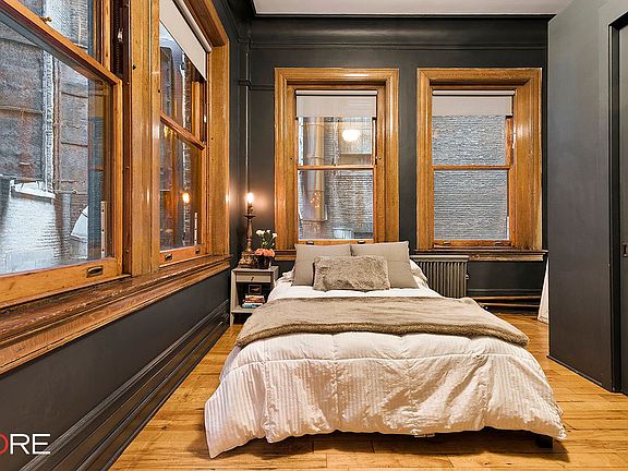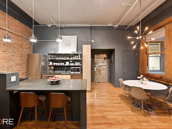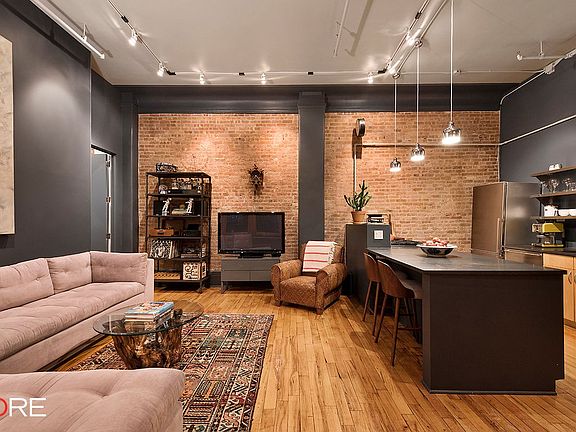 Rarely available Flatiron two-bedroom loft at the MacIntyre Building. This open two-bedroom loft features high ceilings with exposed brick, natural hardwood floors throughout and lots of oversized windows. Recently renovated with care and drenched with details: all the walls were refinished and painted with a handsome and commanding dark grey Farrow & Ball paint; nine wood windows have been fully restored; and there are Baldwin hinges, knobs and hardware throughout. Pin-drop quiet with just three apartments per floor and no shared walls - this back facing loft has windows with internal views, facing north and west. The open floor plan is great for entertaining, with quartz countertops in the kitchen, open shelving, all stainless steel appliances and a large center island to gather at. Custom closets throughout provide plenty of storage. The two bedrooms have been recently redone to maximize the efficiency and layout and add extra closets. The oversized renovated bathroom features WaterWorks fixtures, Restoration Hardware accents, a soaking tub, and a new LG washer and dryer. The MacIntyre Building is centrally located on 18th Street one block above Union Square, with the farmers market, tons of great restaurants, shopping, and all the amenities that Flatiron, Gramercy, Chelsea and Greenwich Village surround you. This elevator building was converted to a co-op in the 1970s and currently has only 23 apartments. The building itself has won New York City Landmarks Conservancy awards, and is noted as being architecturally significant with its unique mixture of Romanesque, Gothic and Byzantine styles incorporated into the building's architecture. Pets are allowed with board approval. Pieds-a-terre, co-purchasing and 80% financing are permitted.