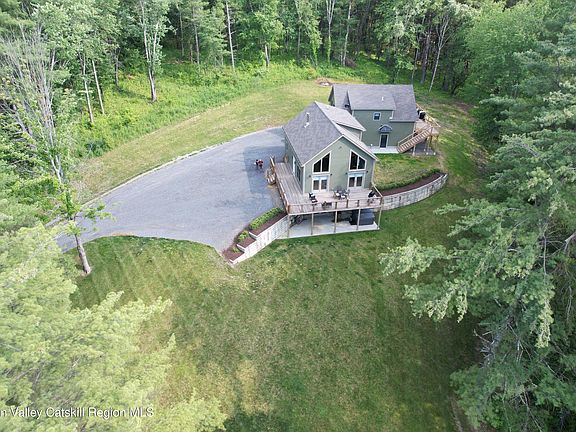 Discover an incredible opportunity of TWO newer homes for the price of ONE, nestled on nearly 30 acres! The beautiful chalet, built in 2018, boasts 2,500sqft of living space. 2Bedrooms plus a versatile office/den in the walk out basement & 2.5 baths. Its spacious open floor plan is designed for entertaining, while the expansive wrap-around deck creates the perfect outdoor space. Enhancing this remarkable property is a newly built detached garage, completed in 2023, which includes a stunning 1,000 sq ft 1bed, 1bath apartment.This adaptable space is ideal as a guest suite, in-law, or rental opportunity, offering both privacy and comfort. Main house is currently a successful AirBNB. Conveniently located just 30 mins from Albany, Hudson & Massachusetts. Only 10 mins to I-90 & 2.5hrs to NYC!