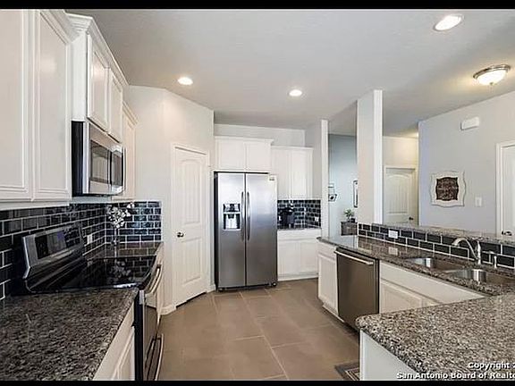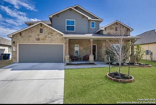 Beautiful home set on 60' homesite. Home features upgraded tile flooring, open floor plan concept, stone fireplace, two covered patios and a balcony. Kictchen includes glass tile backsplash, granite countertops, upgraded cabinetry, stainless appliances and breakfast bar. Master is downstairs with large walk in closet, separate tub/shower. Refrigerator, Microwave, washer and dryer included with the rent. Game room and three additional bedrooms upstairs. Walk to community center and elementary school. Easy access to IH10 and IH35.
