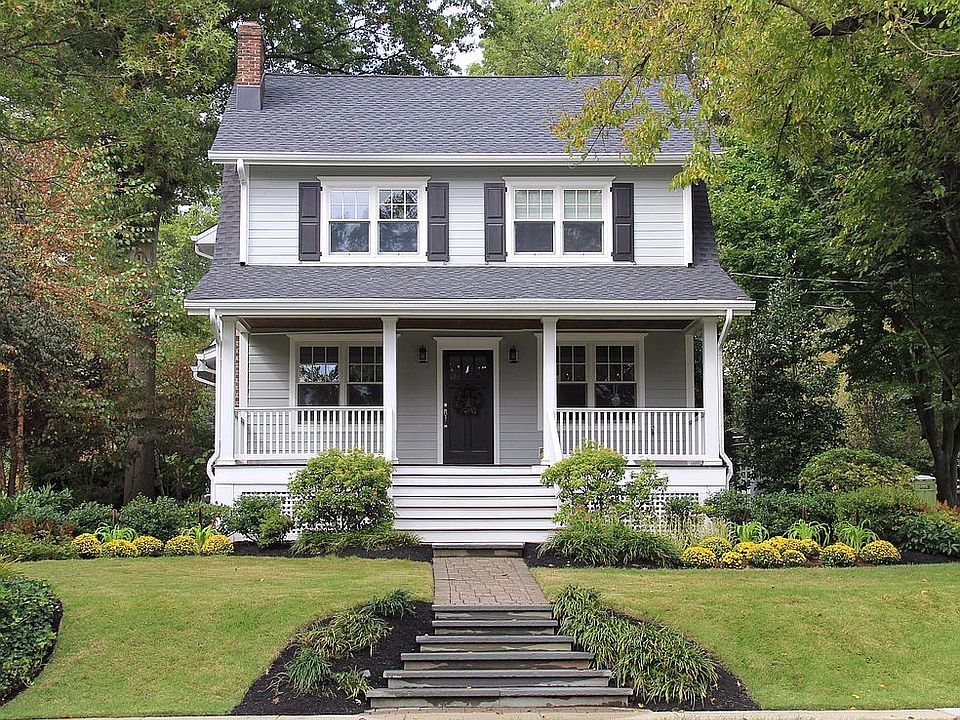 Completely renovated move-in ready Dutch Colonial sitting on a large corner lot (approx 65 x 211). Originally built in 1928, this home offers all the charming details of its architectural day yet has been updated and expanded to accommodate modern-day living. Bluestone and paver walkway and stairs lead you to an inviting rocking chair porch. The focal point of the bright living room is an original wood burning brick fireplace. A set of French doors leads to the formal dining room. Beyond the dining room is a generously sized eat-in kitchen open to family room featuring vaulted ceilings and gas fireplace, perfect for everyday living and entertaining. A full bath and mudroom complete the first floor. The second floor has a gorgeous new master suite with vaulted ceilings, walk-in closet and master bath with a spectacular marble tile shower. Three other cheerful light-filled bedrooms with large custom closets, another full bathroom and laundry complete the second floor. A fifth, large private bedroom is just steps away on the third floor. Downstairs is a finished basement with built-in surround sound system, an additional laundry area, large closets and workroom. The expansive professionally landscaped back yard can be accessed through the mudroom or sliding glass doors in the family room. A bluestone and brick paver patio complete with seating wall and natural gas grill is perfect for entertaining. The fully fenced-in back yard has plenty of space for children or dogs to run and play. Additional improvements include all new custom windows and doors, roof and Hardie Plank siding (2015). Two-car detached garage. Yard fully irrigated. Two-zone heating and central A/C. Interior and exterior french drains. Walking distance to all schools, town pool, park, train and downtown. Lot size alone is priceless.