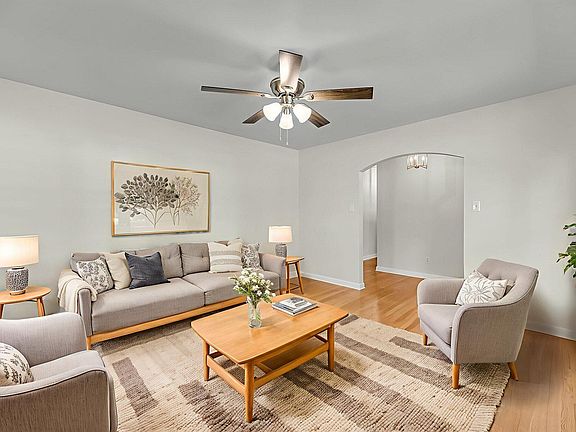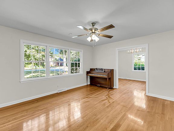 Brick ranchDen with fireplaceOak treesOriginal hardwood floorsMature shrubberyFormal dining room