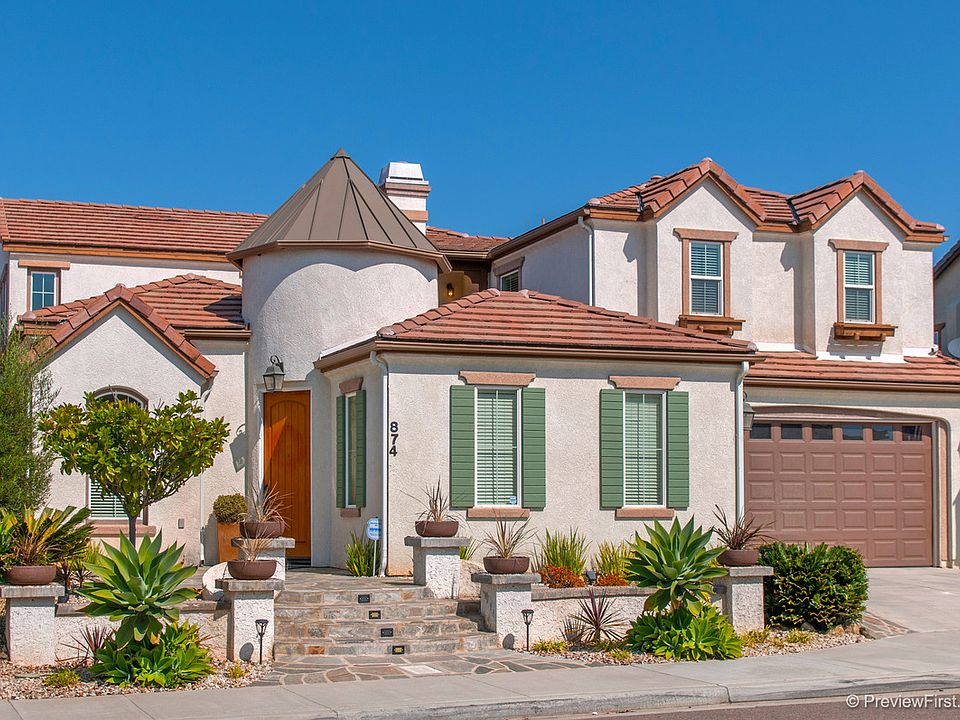 SWEO from $879,900 - $929,900! Welcome to this stunning San Elijo Hills solar powered home. This home captures the So-Cal lifestyle with its indoor/ outdoor living woven through a thoughtful, inviting, open floor plan. This home features a comforting internal atrium for relaxing and a chefs kitchen for entertaining complete with stainless steal appliances, granite counter tops and a convenient island w/ extra storage. The private backyard is complete with a warming gas fire pit and generous patio area.