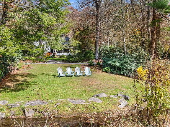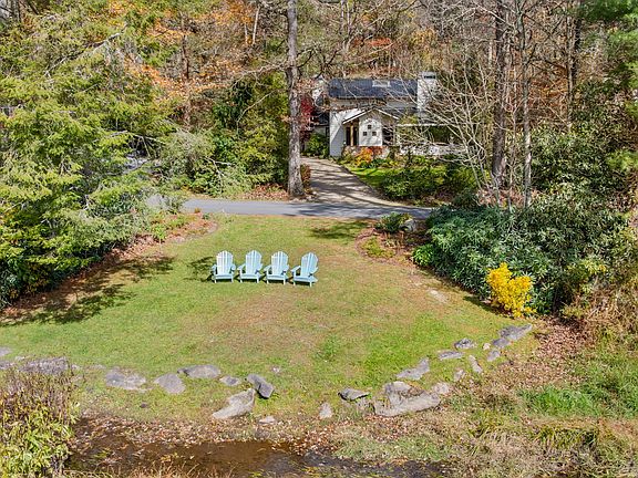 Located on a corner lot in the desirable Mirror lake area in town, this fully renovated 1930's home has a wonderful yard and lovely stream. Entry foyer opens to a living room that features a real stone fireplace. Old home charm is evident from the wood floors, the native stone, to the covered screened porch. Newly renovated cutting edge kitchen, with den/dining area adjacent. The kitchen opens onto a stone patio with stone steps to a usable yard with firepit, storage house, deluxe renovated garage and workshop. The additional main level has a bath, bedroom. Lower level has a sauna, and rec room- man cave. Upper level has a primary bedroom with huge suite baths. 3 additional bedrooms share a central bath. across Cullasaja drive, is an additional yard area to sit and enjoy the stream feeding Mirror Lake.