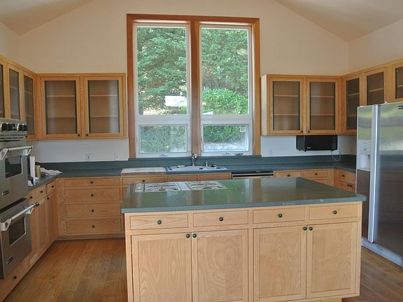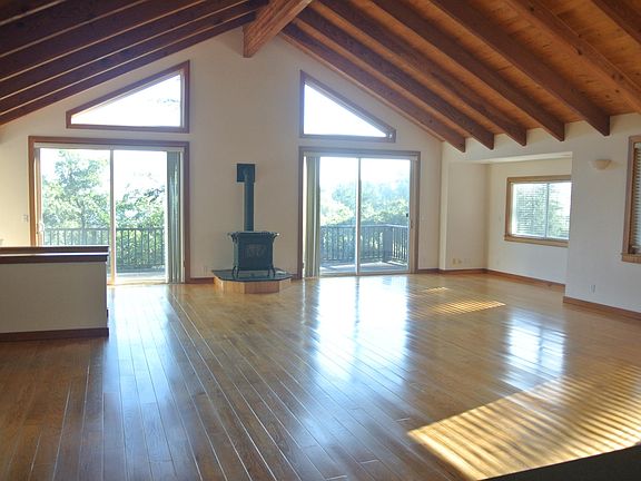 Two story home for rent five miles west of downtown Sebastopol on 5+ acres of land overlooking Freestone Valley. Set on western side of Jonive Rd. Private, spacious, and quiet. House has views, a sunny, southern exposure and many large view windows. House has a great room, cathedral ceiling and open kitchen. Hardwood floors, zoned hydronic radiant heating, and propane furnace. Main floor has kitchen, dining and living room, master and second bedroom along with two and a half bathrooms-one with a jacuzzi bathtub. Downstairs has two bedrooms, a bathroom and a second living room with two entrances. Comcast and/or satellite. 12 minutes to Doran. Property has a small rented unit 150 feet away from the main home. No commercial growing please. One year lease. Gardener negotiable. $7000 security. Owner pays for water and tenant pays for PG&E, garbage and propane