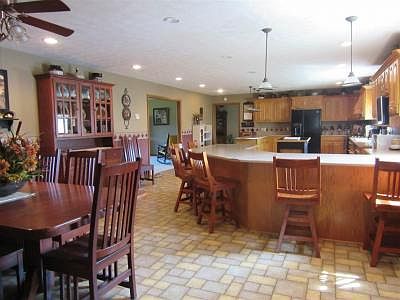 Looking for space in great condition with multiple uses? Here is a nice home with open floor plan. Super large kitchen, large gathering room, huge breakfast bar, large rooms, gas log fireplaces, move in ready! The lower level has 3 car garage, unbelievable storage. Many amenities. Additional 0.20 acre lot included - per seller, sq. footage living space not lower level garages.