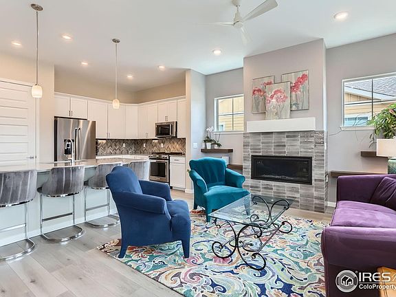 Presenting a captivating listing in the esteemed West Colliers Hill neighborhood of Erie, this charming Boulder Creek home seamlessly combines elegance with modern conveniences. Designed for comfort, the main floor offers a spacious primary suite and a thoughtfully covered back patio, complemented by a front facing office perfect for your professional needs. The home boasts numerous upgrades including a built in storage and workspace within the garage, a convenient Murphy bed in the main floor guest room, and a wall unit complete with bookshelves and additional storage in the office. The laundry room has storage cabinets, and the living room features stylish floating shelves flanking the fireplace. The primary bedroom is enhanced with a custom built in closet, and the entire home is adorned with new blinds and window treatments. Additionally Minke fans are installed in both the living room and primary bedroom. Step outside to a stunning xeriscaped backyard carefully designed with raised beds with an efficient drip irrigation system. Enjoy cool autumn evenings around the fire pit with stunning mountain views. The HOA handles front yard maintenance and snow removal. This home is a perfect blend of functionality and style, ready to welcome its new owners.