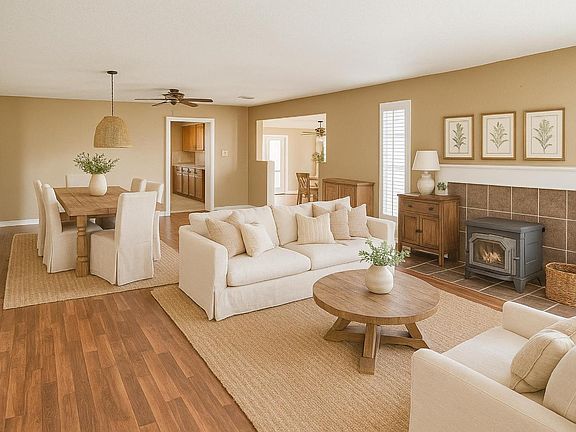 Uninterrupted orchard viewsPeaceful surroundingsAdditional detached garageNew flooringGreen lawn spaceSunken family roomRemodeled bathrooms