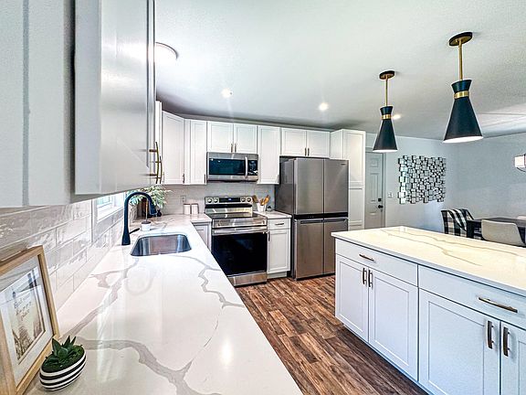Welcome to your dream home! This exquisite ranch-style home has undergone a complete transformation, leaving no stone unturned. Every inch of this home has been tastefully remodeled to create a stunning and contemporary living space that will impress even the most discerning buyers. As you approach the property, a brand-new driveway welcomes you, offering ample space for multiple vehicles. The home's exterior boasts a beautifully landscaped front yard, professionally designed to enhance curb appeal and create a warm and inviting atmosphere. Step inside, and you'll be greeted by a light-filled open floor plan that seamlessly combines elegance and functionality. The spacious living area features numerous windows, allowing natural light to flood the room and showcase the gorgeous hardwood flooring that extends throughout the home. The modern fireplace is a focal point, creating a cozy ambiance all year long. The remodeled kitchen is a chef's delight, with brand-new stainless steel appliances, sleek quartz countertops, and ample storage space. The center island provides a perfect spot for casual dining or entertaining guests. Adjacent to the kitchen is a spacious dining area, ideal for hosting formal dinners or intimate gatherings. This ranch-style home offers generous living quarters with three spacious bedrooms and two spa-style bathrooms. The primary suite is a true retreat, featuring a walk-in closet, a luxurious en-suite bathroom with exquisite finishes, and private deck access. The additional bedrooms are well-appointed and offer plenty of space for family members or guests. Step outside, and you'll find yourself in a sprawling backyard oasis. The large yard provides endless possibilities for outdoor activities and offers a tranquil escape from the hustle and bustle of everyday life. The professional landscaping showcases an array of vibrant plants, creating a picturesque setting for relaxation and entertainment. The interior design exudes sophistication and style, with carefully selected finishes, fixtures, and lighting that perfectly complement the home's modern aesthetic. This stunning ranch-style home offers the perfect combination of luxury, comfort, and convenience. With easy access to schools, shopping, restaurants, and more, you'll have everything you need right at your fingertips. Now is the time to make this remodeled gem your own!