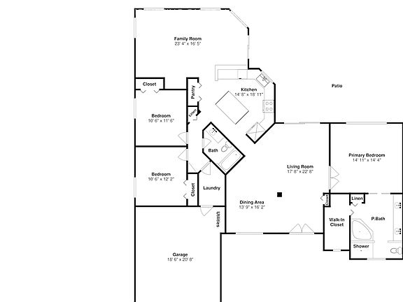 Kitchen islandSingle story houseGranite countertopsLuxury vinyl plankRecessed lightingStainless steel appliancesWalk in closet