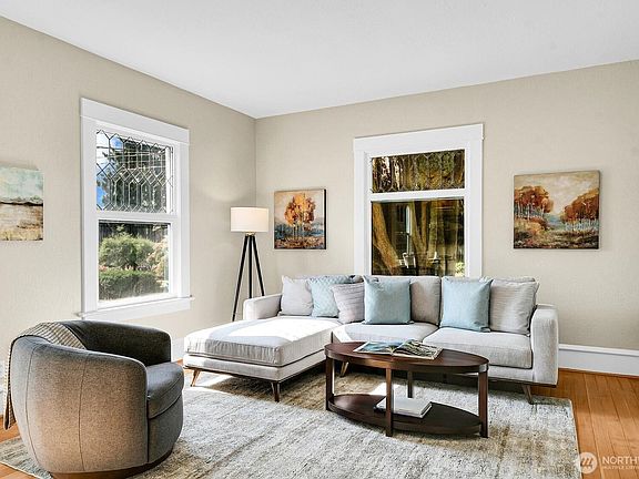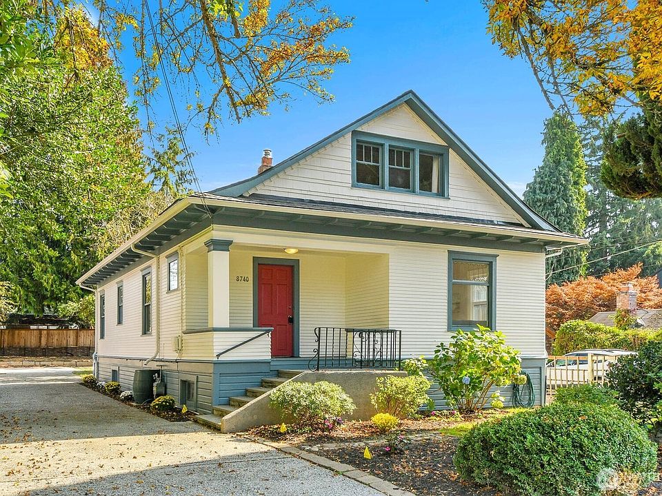 This remarkably inviting, attractive & classic bungalow shows beautifully & possesses exceptional curb appeal. Lovely front porch opens to a true formal entry. Welcoming spacious living rm. Grand bay window in the dining rm. Cook’s kitchen w/ an abutting breakfast nook & sliding glass drs to the deck. Enjoy the grandeur of 9ft ceilings & beautiful fir flrs throughout the main level. Tons of natural light grace this home. Upper level bedrm, office space, family rm & 2nd full bath. The unfinished lower level is ready for your expansion & personal touches. Wonderful 5,500 SF level grounds offer private living space or room for a DADU or perhaps more. Close to shopping, transportation, schools & parks. A truly lovely home & a great opportunity!