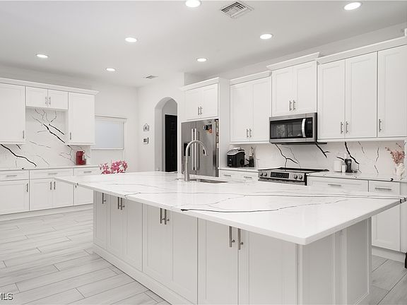 *$10,000 buyer incentive with full price offer!* Stunning POOL home for sale in Banyan Bay, with luxury modern finishes & FENCED in backyard! Gorgeous landscaping & stone accents on exterior create instant curb appeal as you drive up. This home features a completely remodeled Kitchen with an EXTRA LARGE Quartz Island over 10ft that extends up to the backsplash. Brand new custom soft close cabinets, & Bosche stainless steel appliances. TESLA charger installed in the garage, along with brand new POXY FLOORS! Transferable FLOOD POLICY - ONLY $1200!! This Impeccably maintained home is in perfect move-in condition! BRAND NEW ROOF & A/C. Heated pool with a fenced in backyard, offered furnished, this home is MOVE IN READY!! Fiber Optic internet option available in this community, conveniently located in Fort Myers, only 10 minutes to Fort Myers Beach, 15 mins to Sanibel, 10 minutes to Lakes Park, & 25 minutes to the Airport. CLOSE to Shopping, Dining and Top Rated Schools, this location couldn't be better! NO CITY TAX OR CDD TAX IN BANYAN BAY ! LOW HOA OF $240 A MONTH INCLUDES YOUR LANDSCAPING AND COMMUNITY SECURITY. Call to see it today!