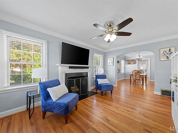 Open House Sunday 10/19 from 1-3 PM! Don't miss out on this charming 4-Bedroom Affton home! A welcoming covered porch sets the tone as you step into this beautifully maintained home. The spacious living room features a cozy wood-burning fireplace and gleaming wood floors that flow through most of the main level. A bright dining room with dual windows opens to a well-appointed kitchen boasting stainless steel appliances, white cabinetry, tile backsplash, and a convenient pantry. Enjoy your morning coffee in the inviting sunroom overlooking the large backyard — perfect for relaxing or entertaining. The main floor offers two comfortable bedrooms, one ideal for a den or home office, along with a full bath in the center hall. Upstairs, discover two additional bedrooms, including one with built-in bookcases, dresser, and hope chest, plus a fantastic 4th bed option that makes a great play area or media room. A full basement provides extra storage or future finishing options. Recent updates include a newer driveway, 1-year-old roof, 200-amp electrical panel, PVC plumbing, zoned heating & cooling, and storage shed. Move-in ready and full of character — welcome home!