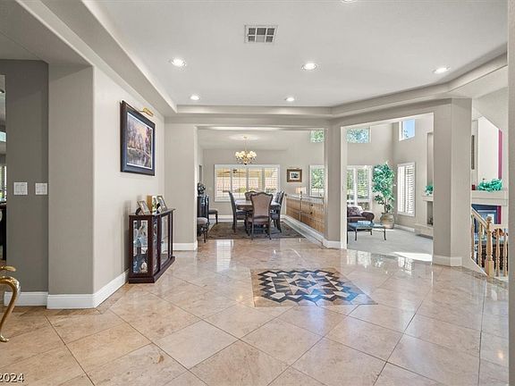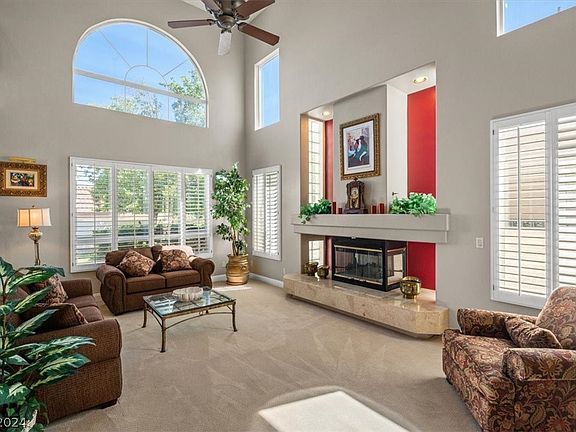 Walk into luxury living in this gorgeous Northwest Las Vegas Estate. With nearly 5000 square feet, large oversized rooms providing that grand feeling and a large basement are just a few of the many benefits of living here. The split level floorplan is great for entertaining as well as perfectly defined areas. The open kitchen also includes an informal dining nook and overlooks the family room with fireplace. Double ovens, wine bar and wine fridge, pull out shelves and soft close add convenience to the heart of the home! Formal dining room and living room add extra space & grandeur. Every bedroom will exceed your expectations for space & privacy. Bedroom 2 is en-suite w/private bathroom. Luxurious primary suite has an elegant primary bathroom & walk-in closet. All closets have custom built-in shelving. Basement is massive and makes great movie room. This home has been lovingly cared for, it includes new 2023 5-ton AC units. The backyard incl. artificial turf, stuccoed walls and dog run.