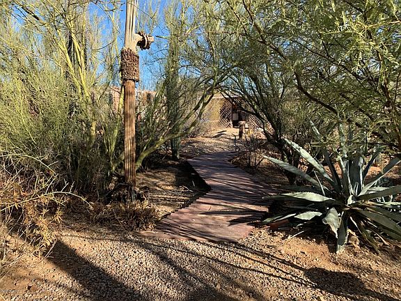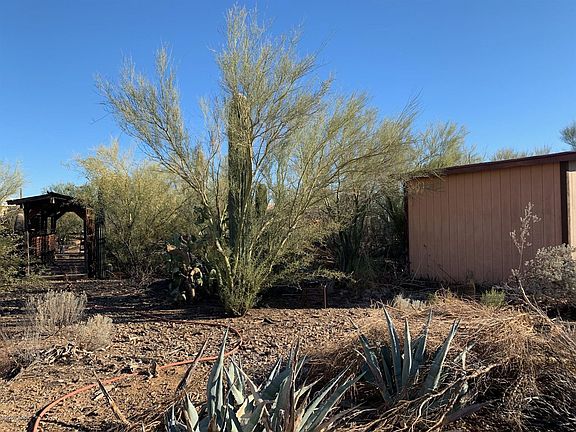 Great Property on 1 acre lot. This unique property includes 2 Mobiles, 1 currently occupied and 1 shell for your creative use. Two sheds/workshops with full electric and shelving. Ramada with electric. Mature landscaping for extra privacy and desert living. Many unique features added to the landscape from wooden walkways to a covered walking bridge. Main Mobile has add on space to include an inside laundry room and lots of extra space. Property sold As Is.