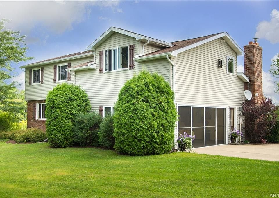 ORCHARD PARK SCHOOLS and PUBLIC WATER AVAILABLE. Move-in ready home on nearly 9 acres with 2 ponds, 2 outbuildings, trails, incredible gardens and an amazing view with total privacy. Hardwood floors in livingroom & peg floors in familyroom with woodburning fireplace and sliding glass doors to patio and spectacular views. Livingroom would also make an ideal space for formal diningroom. . Master suite features gas fireplace and jacuzzi tub and plenty of storage. If you like to party, fish, picnic, trail ride or simply sit and relax in the peaceful outdoors, this place is for you. This is a jaw dropping property. Nothing but love went into this home. 4th Bedroom is used as the 2nd floor laundry. This is also ideal home and property if you have horses! House is secluded from road.