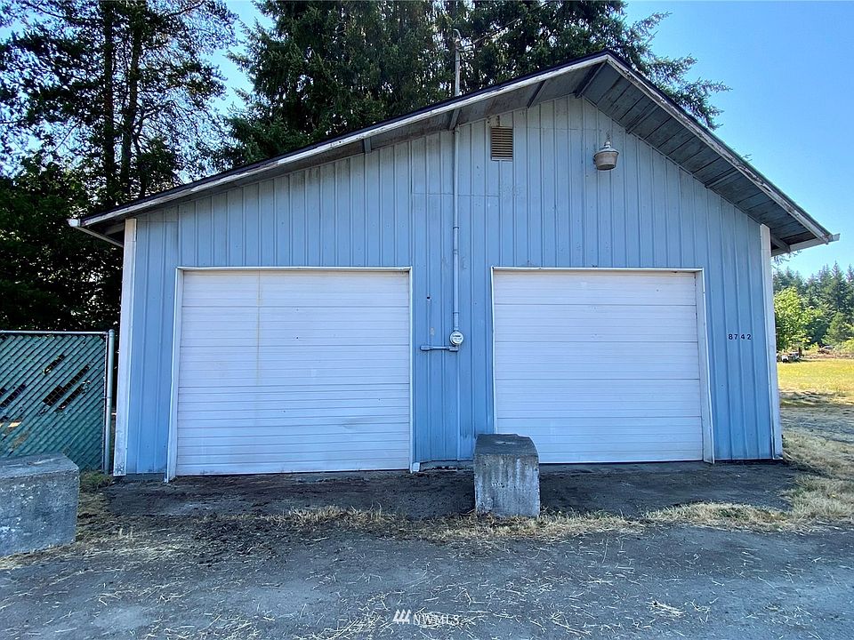 Amazing opportunity to own some land and a shop in a great location. This 1008 sq ft warehouse is fully insulated with a gas furnace and water on site. 2 bays with 10 x 9 steel roll up doors and 11 foot ceiling. Wired for 220. Formerly used as a governmental firehouse building and is a potential candidate for a zoning variance with the county. Perfect for storage or small business. Property has been income producing since 2006 between $850 - $1050 a month. Lots of space in the finished attic with large access. Shop is secure and in great condition. Property lines go beyond enclosed fencing. Close to I-5 and shopping.