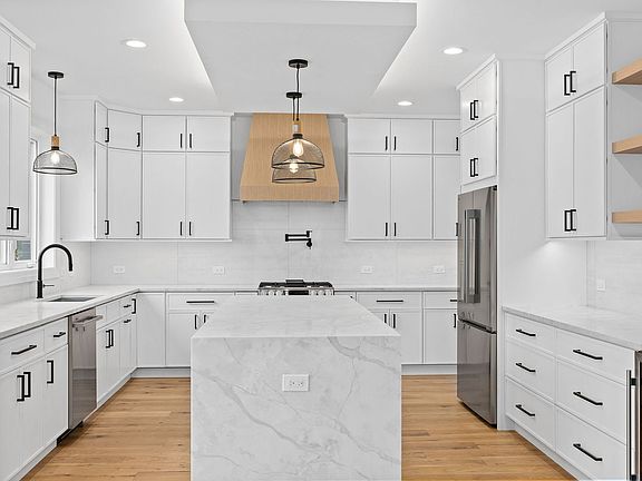 This stunning custom-built home offers the perfect blend of timeless craftsmanship and modern design. Featuring 4 spacious bedrooms, 2.5 bathrooms, and an oversized 3-car garage, every detail has been thoughtfully curated for style and comfort. Step inside the grand foyer, where an open layout flows effortlessly into the office, family room, and living room with custom built-ins, an elegant electric fireplace, and sliding glass doors that open to the backyard - perfect for entertaining or relaxing. The chef's kitchen is a true showstopper, showcasing custom rift-cut cabinetry, an oversized quartz waterfall island, and top-of-the-line LG appliances, including a range with pot filler. Elegant pendant lighting, under-cabinet lighting, and a built-in speaker system add a touch of luxury and function throughout. Beautiful white oak floors flow throughout both the main and second levels, enhancing the home's natural warmth and sophistication. Upstairs, a bright and airy staircase leads to four spacious bedrooms, two bathrooms, and an oversized laundry room. Every closet in this home features custom-built shelving, providing organization and style in every space. The primary suite is your private retreat, featuring a double vanity, rainfall shower, and soaking tub for ultimate relaxation. Experience the perfect balance of sophistication and comfort - where modern elegance meets everyday living. Love where you live - welcome HOME to Oak Lawn.