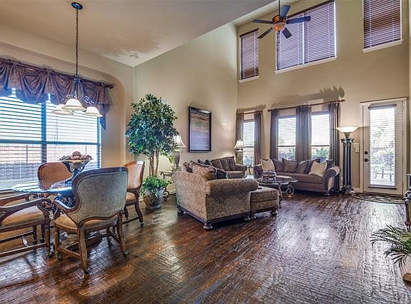 Spanish villa style home in the heart of Emerald Valley. Original owner has perfectly maintained and updated it. High end finishes include hand scraped hardwood floors, travertine tile, and granite countertops. Open concept kitchen and living room with vaulted ceilings are great for family gatherings. Media room and wet bar in upstairs living room. Adjoining bath connects two spacious bedrooms upstairs. Large corner lot with spa-pool. This home has it all to quarantine in luxury!Close to nightlife in Cypress Waters. Walking distance to North Lake Ranch Park. 5 minutes from grocery stores. Close enough to I635 for easy commuting, but not so close you can see or hear the highway.