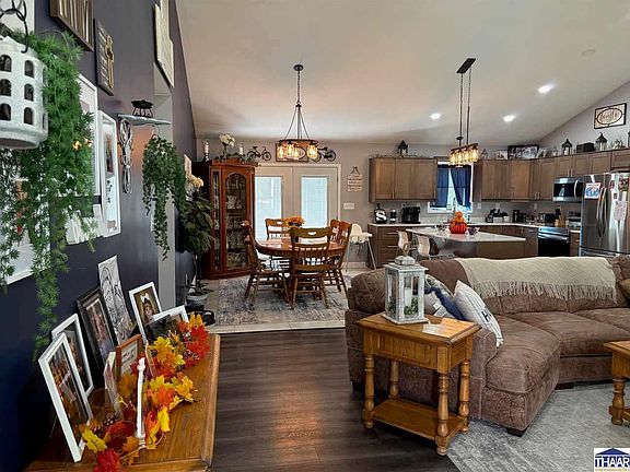 Amazing newer construction home on almost 2 acres in Krislynn Woods! This home was built in 2022, has just over 1800 square feet, and features a spacious open concept split floor plan with three bedrooms and two full baths. The kitchen has sleek modern cabinetry, quartz countertops, and stainless steel appliances. All appliances included! The living area features vinyl plank flooring, ceramic tile flooring, vinyl windows, and vaulted ceilings. The spacious primary bedroom has a large walk in closet and a large bath with double sink, shower, and a large tub. Two other bedrooms and a full bath on the other side of the home with a large laundry room. The 720 square foot attached garage is heated and cooled and would make a great workshop area. Outside you will find a 16x24 deck and a 30 ft above ground pool to relax in during summer. Savor your morning coffee on the large covered front porch. Enjoy the Krislynn Woods neighborhood tennis courts, playground, and pond. Call to view!
