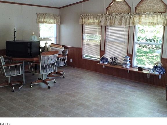 Huge Mobile Home, Laundry room w/ washer, dryer, freezer, sink and pantry. kitchen w/ built in oven, stove w/oven, large stainless steel refrigerator. large bright Sunroom. Split floor plan, lg master, lg master closet and bath w/shower & jetted garden tub. Also 4 Large good size bedrooms & 2 more full baths, Cathedral ceilings. detached garage. Deck w/ handicap ramp. 2 additional storage bldg. House has back up generator. New roof, new well, Road soon to be paved.