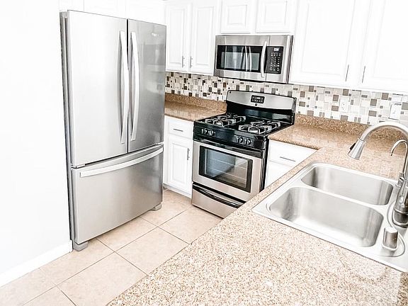 Epoxy flooringLow maintenance backyardMature landscapeArtificial turfRing doorbellStainless steel appliancesWhite cabinets