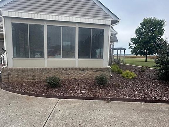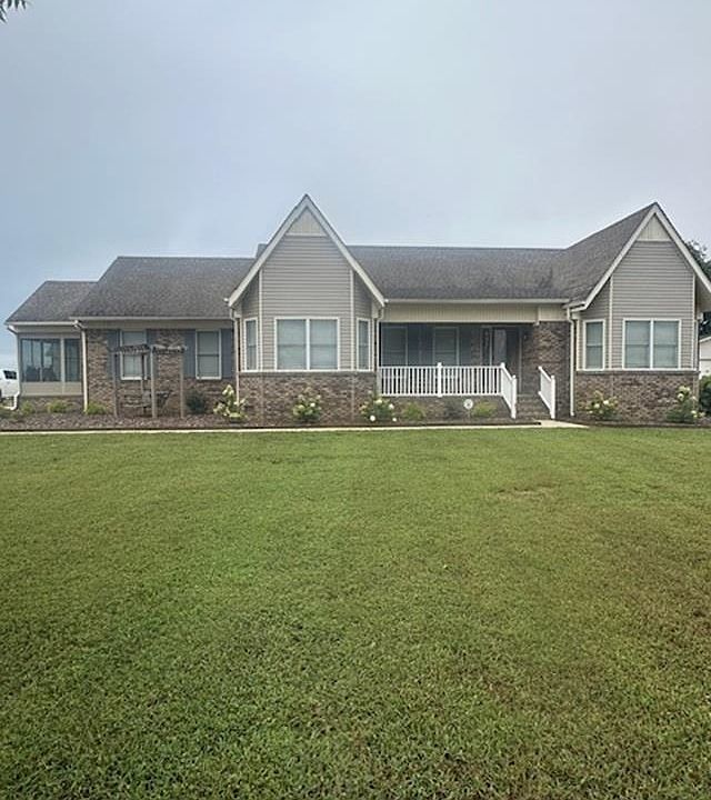 This beautiful 2,465 sq ft home has it all! It sits on .9 acre of manicured lawn and low maintenance shrubs and trees.  Double bay windows adorn the front of the house. As you enter the front door you are greeted with cool toned wall colors and shining Red Oak hardwood flooring is in all the rooms except the kitchen/laundry and bathrooms which have waterproof ceramic tile. The split floor plan provides privacy and separation of noise. From the front entrance a formal dining room is located on the left across the hallway to the right are two bedrooms separated by a full bath and two linen closets. Forward from the front foyer is a large family room that has a beautiful Red Oak with Marble inset gas log fireplace. Full length windows provide and abundance of natural light. The eat in kitchen ample cabinetry. All appliances are less than three years old as is the HVAC unit. The primary suite is a true retreat with huge glamour bath. And you can have your coffee in the glassed in sunroom.
