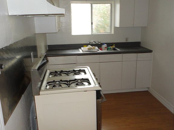This out of the way duplex is located in a commercial area down a private driveway, quiet location all business close down at night! This 1 bedroom duplex has a nice size livingroom, kitchen and big bedroom with wood flooring thoughout, laundryroom and storage room with fenced backyard. Front enclosed porch with Parking make this a must see property. We are offering a years lease, we run credit for $30 a person.