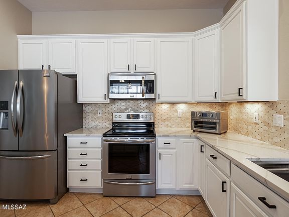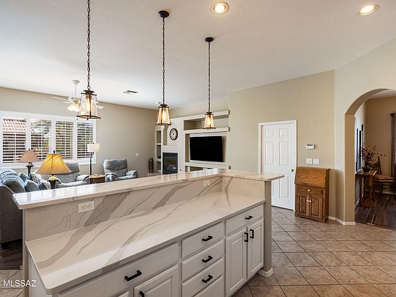 Tucked away in the private 28-home enclave of Maya Estates, this beautifully updated Tucson residence blends Southwestern warmth with modern design. The open, single-level floor plan features 4 bedrooms, 2 baths, and 2,637 sq. ft. of refined living space on a generous 0.32-acre lot.Bright and inviting, the great room offers vaulted ceilings, plank tile floors, and a cozy gas fireplace, while the chef's kitchen impresses with quartz countertops, stainless appliances, custom backsplash, and a spacious island perfect for gathering.The primary suite is a tranquil retreat with a walk-in tiled shower, dual vanity, and private patio access. Step outside to enjoy covered patios, turf landscaping, and a serene desert backdrop ideal for quiet mornings or entertaining under the stars.