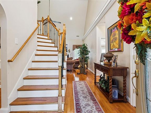 A beautifully maintained home offering comfort, privacy, and convenience. This four-bedroom, three-bath home features an inviting open-concept layout filled. The spacious living area flows seamlessly into the kitchen and dining room, ideal for entertaining. The primary suite includes an en-suite bath and walk-in closet, an additional main-floor bedroom with a full bath provides flexibility for guests or multigenerational living. A staircase leads to a large FROG that can easily serve as a fifth bedroom, bonus space, home office, or recreation space. A separate front staircase accesses the two upper-level bedrooms and another full bathroom. Enjoy a screened porch that connects to both the living room and primary suite, plus a patio deck overlooking a spacious backyard. A two-car garage includes a room-sized storage area. Conveniently located near shopping, dining, and major routes.