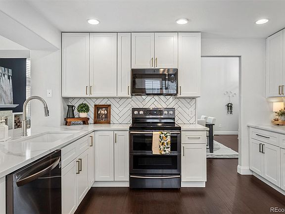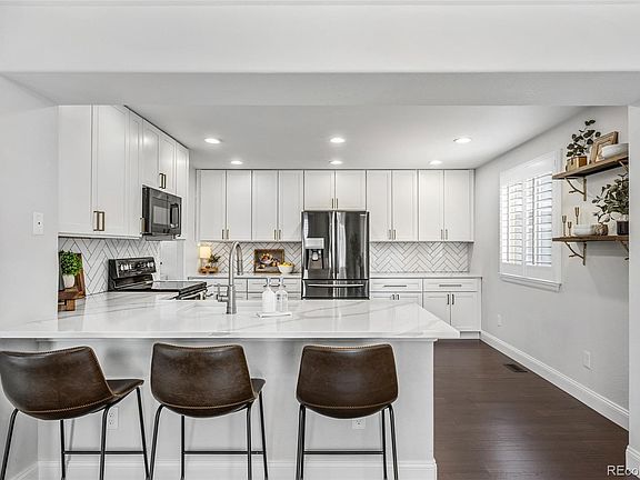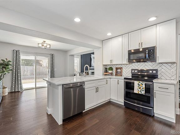 Comfort and style converge in this inviting Eastridge home. Lofty vaulted ceilings inspire an airy atmosphere in a spacious living room anchored by a statement fireplace. An elegant dining area sets the scene for hosting at-home soirees with guests. Updated with modern finishes, the kitchen features all-white cabinetry, stainless steel appliances, a tiled backsplash and a peninsula with seating. Sliding glass doors open to a covered patio in a private, fenced-in backyard — the perfect setting for enjoying outdoor entertaining and relaxation. A sizable primary suite offers a true retreat, boasting a large walk-in closet and a 5-piece en-suite bath. Two secondary bedrooms are complemented by a serene bath. Downstairs, a finished basement provides flexible living space with a rec room and space for an additional bedroom or home office. Ample storage is found in an attached 3-car garage. Situated in a prime, accessible location, this home offers easy access to Littleton amenities and outdoor recreation. The seller will pay off the solar panels at closing, offering the new buyer an incredible opportunity for instant savings on utilities!