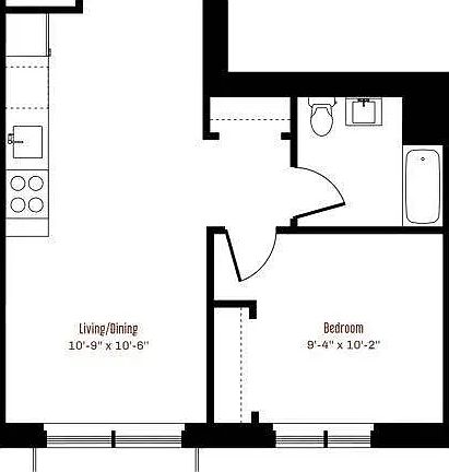 - Unit is currently configured as a large one-bedroom, but living room will be converted with a flex wall at no additional charge