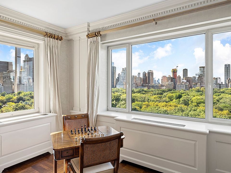 Immerse yourself in the timeless elegance of Old World Europe while enjoying breathtaking panoramic views of Central Park and the iconic New York City skyline. This sun-drenched 3-bedroom, 3.5-bathroom apartment blends classic pre-war charm with luxurious modern comforts, featuring original hardwood floors, Venetian plaster walls, charming built-ins, and wainscoting. The space is further enhanced by prominent crown molding and expansive windows that flood the interiors with natural light from every direction.