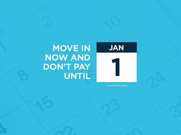 - Special offer! Move in Now & Do Not Pay Until January 1, 2026 - *Promotion applies to new fixed term leases signed by November 30, 2025. Conditions apply. See us for details.