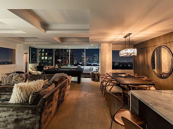 Artfully designed, fresh, fully furnished (or unfurnished), two bedroom, two bathroom at the stunning Wilshire Comstock. 1699 Square feet of exquisitely done interiors by noted interior designer, Tim Campbell. Spectacular, unobstructed views of Wilshire Boulevard, Century City, Beverly Hills, LACC and Downtown. Lavish gourmet kitchen with extensive use of Calcutta Marble and custom Italian cabinetry with soft close drawers. Professional quality stainless steel appliances including Bosch range, oven and dishwasher. Custom hardwood flooring. Large master retreat with custom closets and an exquisite master bath fully dressed in Black River Marble, Carrerra Marble, and custom herringbone marble floors. Full laundry room in unit with top of the line washer/dryer. No expense has been spared and no luxury has been overlooked. This unit has every amenity one could ask for: 24 hour valet, concierge service, full gym, sauna and large swimmers pool. Do not miss this rare and exceptional offering