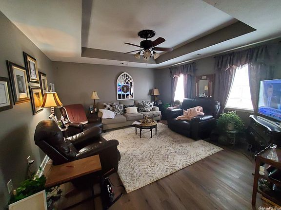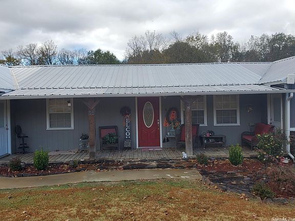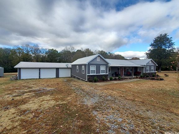 Looking to be out of town, you have found it here! Here is a 4 bedroom, 3 1/2 bath home with front and back covered porch, 3 car garage, 16x20 storage building, storm cellar on almost an acre. Large living room, dining room and kitchen with lots of cabinets. Close to Little Red River and about 15 minutes from Searcy.
