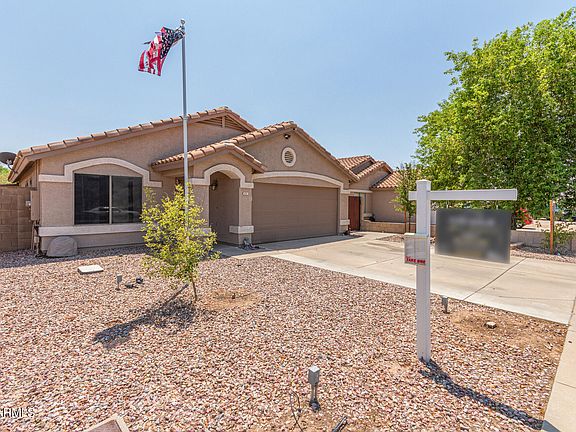 Open floor plan located in a convenient location by the US 60. Kitchen has been remodeled with 36in Hickory kitchen cabinets, black granite countertops and black composit deep single sink! Hallway bathroom has been remodeled to enlarge and equipped with a jet tub, 6 option shower, and marble countertops. Lighting has been upgraded throughout. Laundry/pantry room added with room for freezer. 1.5 car garage has built in work bench, dedicated space for a compressor and permanent shelving. HOA approved shed in backyard for storage. Backyard is set up for all your entertainment needs with a covered patio, built in BBQ with seating bar, cement pad wired with 220 for a spa and multiple outlets for anything you need. You don't want to miss the opportunity to own this home!!
