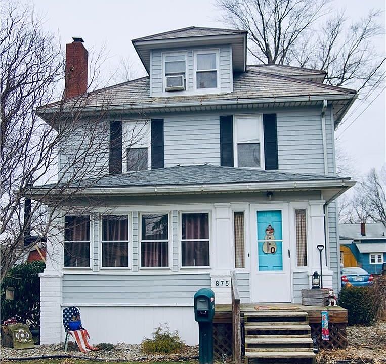 So much charm and character in this lovely, centrally-located Colonial! Welcome to 875 Hartshorn St., Alliance, OH 44601. You will notice and fall in love with the details no longer found today like the thick wood molding showcased throughout this home, beadboard kitchen ceiling, wainscoting, real hardwood floors, and so much more. Relax with a warm fire in the covered porch or enjoy a fire from the brick fireplace in the Living Room. Dining room opens to the living room and kitchen plus the main floor powder room. A wood staircase and rail lead to a hallway with large built-in storage, access to 3 bedrooms, a full bathroom, and steps to the finished attic space. The rustic details continue in the full bathroom that features a converted dresser vanity, wood covered tub, and industrial light fixture. Enjoy the extra space this home has to offer in the finished attic or the finished basement, complete with a 2nd full bathroom. A large wooden deck overlooks the lot and shed. If you love rustic charm & character, schedule a showing now! Close to Mount Union. Also zoned for commercial use (ALL_B2)