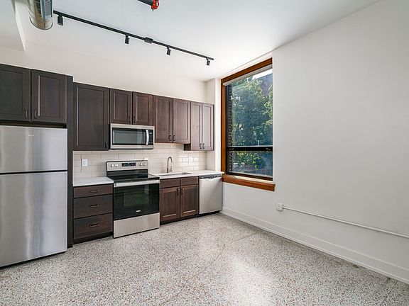 Beautiful large windowsStainless steel appliancesExposed brick details