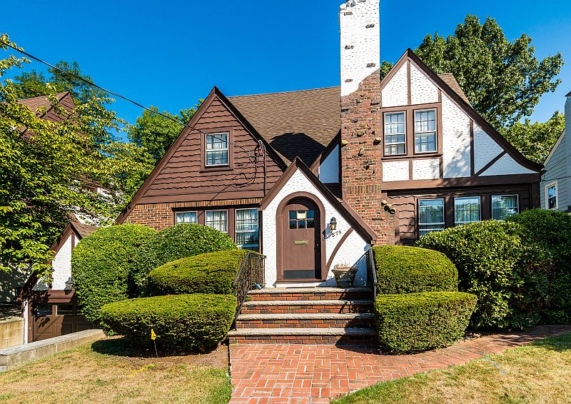 Charming 4 BR 2.1 bath tudor walking distance to schools, shopping and NY Trains, Beau newly refinished floors on first floor, Eat in Kit/granite counters, double oven, Louvre doors to gracious Dining Room Living Room/gas fireplace, moldings, PR, Sun Room/tiled floors, heat and air, French doors to large deck and yard, Mstr/carpet, Mstr Bath/stall shower, Finished Bsmt, new gas furnace, new garage door, ADT security system, central air(2 zone), brick front walkway, central vac