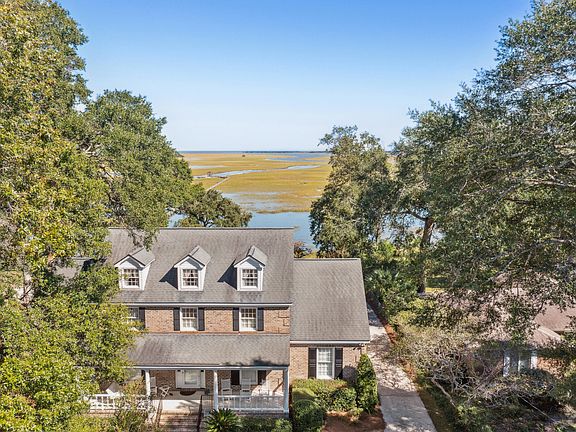 Nestled on a high bluff with sweeping views of Cummings Point in historic Fort Johnson Estates on James Island, this stately marsh front home is a true gem. Just minutes from historic downtown Charleston, you will enjoy views of the Sullivan's Island Lighthouse as container ships traverse the harbor. Built in 1976, this brick home has been meticulously maintained by the original owner. You are greeted by a sodded front yard and expansive front porch. The traditional floorplan includes stone foyer, formal dining and living rooms with ageless heart pine floors, eat-in kitchen with granite countertops and a massive family room boasting exposed beams, a wood burning fireplace and built-in bookshelves. The laundry room is located downstairs as well as a guest suite and full bath. Upstairs, youwill find the large primary bedroom suite with stunning views of the marsh. There are three additional bedrooms, a full bath and a huge storage closet on this floor. The storage space is truly incredible, not to mention the expansive attic space if one wanted to incorporate additional square footage. The sixth bedroom, accessed from downstairs, is currently utilized as an office/recreation room. There is a screened porch off of the family room overlooking the back yard making it the perfect place to enjoy the views. This wonderful and spacious home is waiting to be updated for its next chapter and the potential is endless.