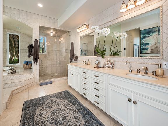 Recently remodeled Mediterranean house right on the water with plenty of amenities. This house has spectacular views and an expansive deck. The house is an entertainer's dream due to the extra large kitchen with state of the art appliances and seating for large families. The complex has an indoor pool, clubhouse, tennis court, and plenty of lush landscape to walk around. The backyard is literally the Pacific Ocean