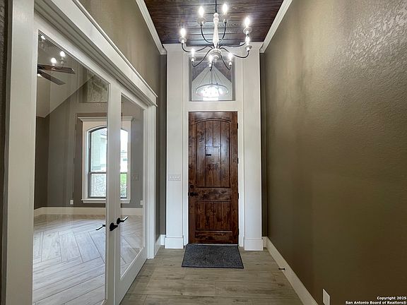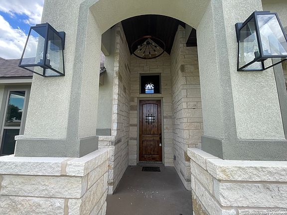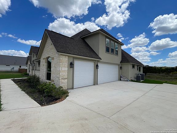 PRICE REDUCED TO SELL! This striking custom home is all masonry and rests on an acre plus homesite in one of Castroville's newest exclusive gated neighborhoods, Potranco Acres. This home features a spacious living area with a beautiful barrel ceiling, an office/study, 4 bedrooms, 3 full bathrooms, an island kitchen, an 8-burner gas cooktop with double oven, granite countertops, hidden spice racks, stainless steel appliances, custom cabinets, crown molding, upgraded lighting, 2 fireplaces, a huge, covered patio and an oversized three car garage. There is also a bonus room which could become a 5th bedroom, game room or media room. Primary bath has tiled shower and separate vanities. Come see this beautiful new home and make it your own.