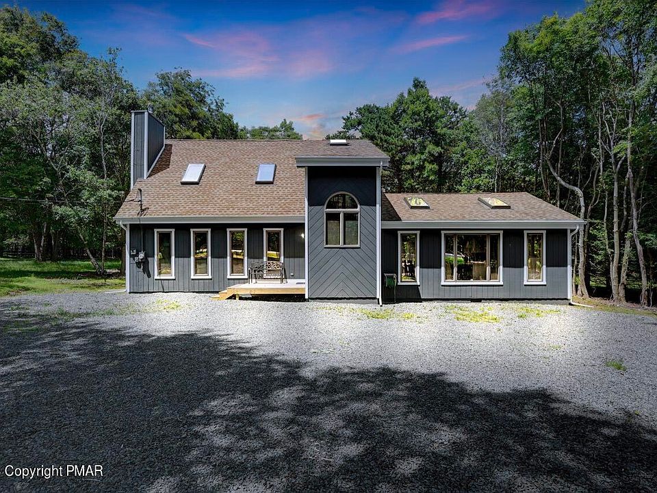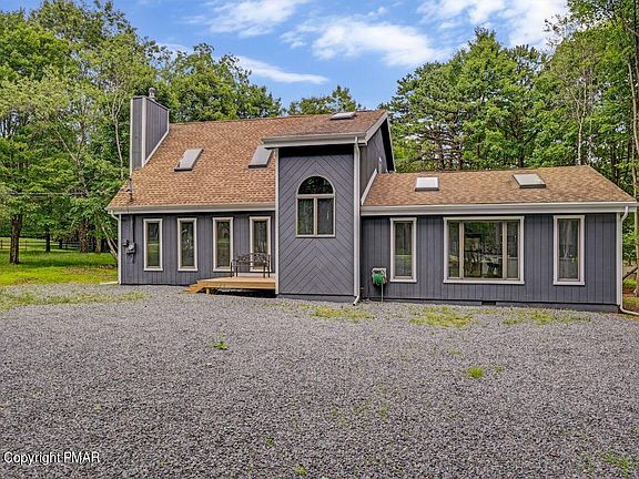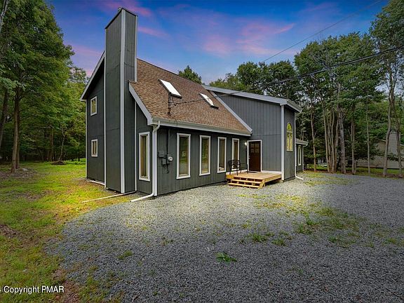 Discover a vacation home with a unique charm. The contemporary four-bedroom, two-bath home features new renovations with striking modern and mountain touches. NEW Roof, New Water treatment system. Curent AIRBNB HOME SOLD WITH ALL READY TO USE OR RENT. The new kitchen is bright and airy, with white and grey shaker cabinets, quartz countertops, and stainless-steel appliances. Bathrooms have marble-like porcelain tile walls and tiled shower/tub areas with multi-jet shower fixtures, floating vanities, and new lights and mirrors. Also, there is newly installed flooring and paint throughout the entire home. The home is in desirable Towamensing Trails with a lake, beach, pool, playground, clubhouse, pickleball, and more. Nearby, find Kalahari, Lake Harmony, Historical Jim Thorpe, Camel Back Resorts, The Crossing's Outlets, and Mount Airy Casino